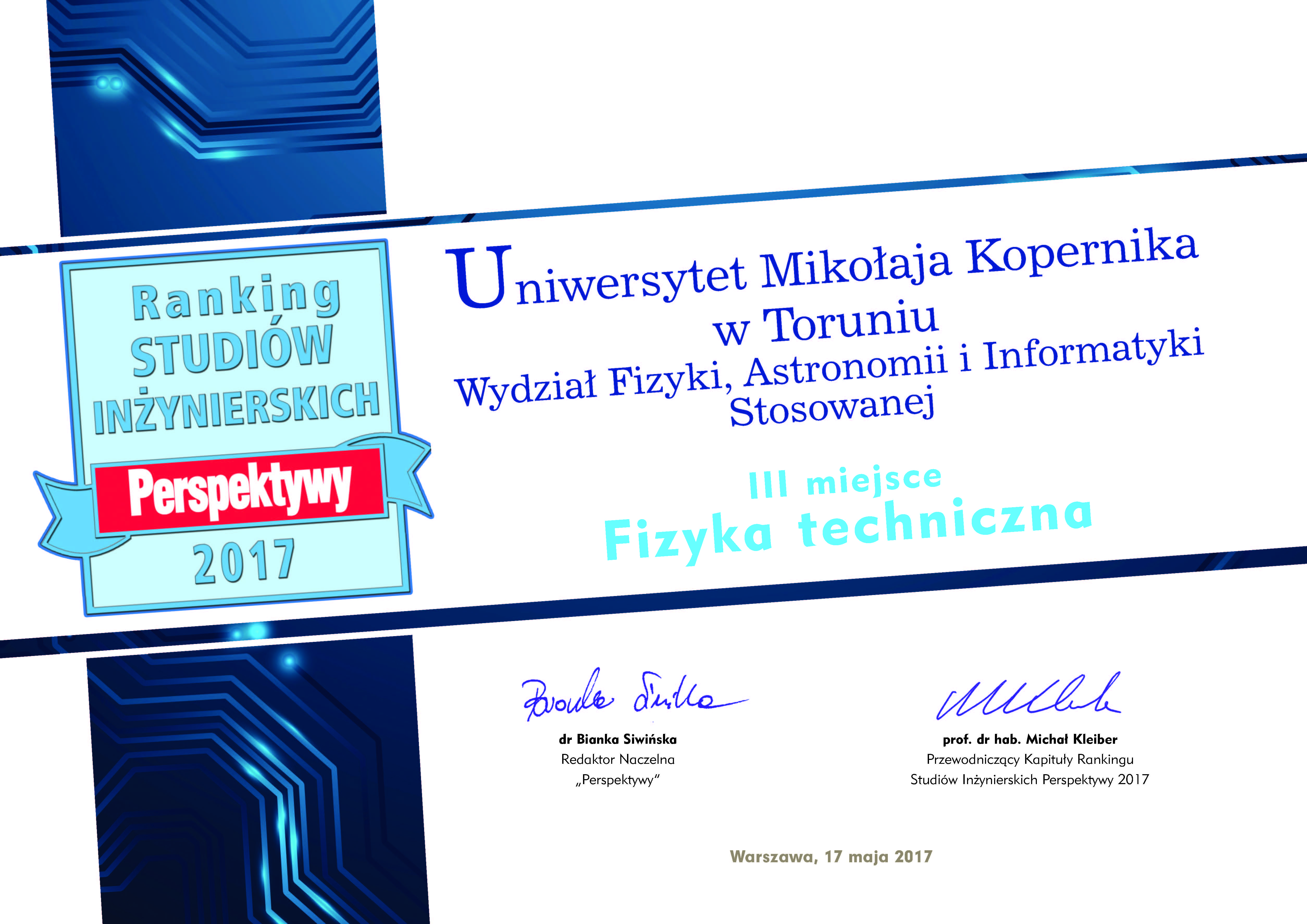 Toruńska Fizyka Techniczna na 3. miejscu w Polsce